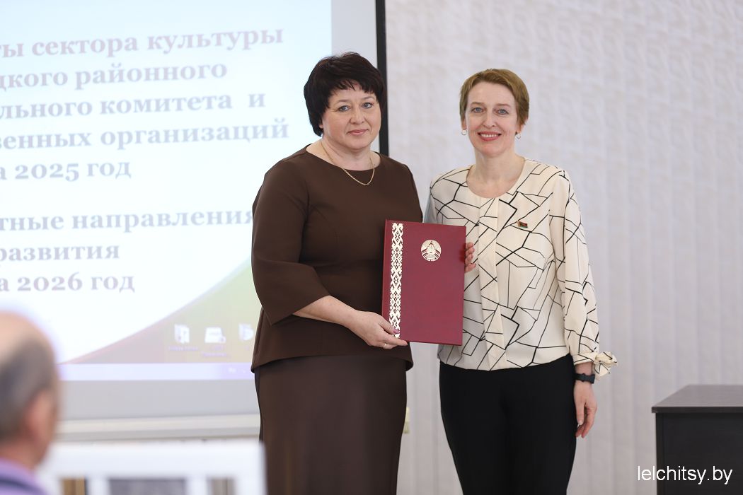 В Лельчицком районном центре культуры и народного творчества состоялось отчётное собрание, в ходе которого работники сектора культуры райисполкома подвели итоги работы за прошлый год и определили цели и задачи на 2026. В мероприятии приняли участие заместитель председателя райисполкома Наталья Шишканова, заместитель председателя районного Совета депутатов Алла Митько, заведующий сектором культуры райисполкома Галина Грибовская, а также представители учреждений культуры, библиотек и музея. Почетной грамотой Лельчицкого районного Совета депутатов награждена библиотекарь филиала «Стодоличская сельская библиотека» государственного учреждения «Лельчицкая районная централизованная библиотечная система» Нине Приболовец. Грамотой сектора культуры Лельчицкого райисполкома награждены: библиотекарь отдела формирования библиотечного фонда, маркетинга, социокультурной деятельности и методической работы государственного учреждения «Лельчицкая районная централизованная библиотечная система» Анна Осипова, библиотекарь отдела формирования библиотечного фонда, маркетинга, социокультурной деятельности и методической работы Татьяна Линкевич. Благодарность сектора культуры: сторожу государственного учреждения «Лельчицкая районная централизованная библиотечная система» Валентину Бех; рабочему по комплексному обслуживанию и ремонту зданий и сооружений и сторожу государственного учреждения «Лельчицкая районная централизованная библиотечная система» Михаилу Колесному и Василию Козачку; сторожу государственного учреждения «Лельчицкая районная централизованная библиотечная система» Павлу Лаврову; библиотекарю филиала «Детская библиотека» государственного учреждения «Лельчицкая районная централизованная библиотечная система» Ольге Стаховской.