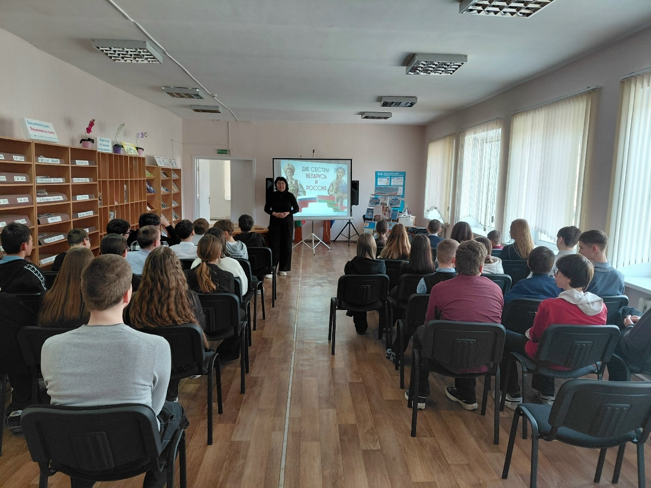В рамках Дня единения России и Беларуси в государственном учреждении "Лельчицкая районная централизованная библиотечная система" прошла тематическая программа "Славянские сёстры Россия и Беларусь: мы едины" для учащихся 8 "А" и 8 "Б" классов ГУО "Лельчицкая средняя школа №2 им. М.Д. Некрашевича". Сотрудники библиотеки совместно с детьми листали страницы необычной книги, авторами которой являются два славянских народа – русский и белорусский. Общая история, традиции и обычаи… Мы живем вместе, мы так похожи, и все таки такие разные… На мероприятии ведущие рассказали о годах войны, о народных праздниках и обрядах о символах двух стран и многое другое. Финальным аккордом тематической программы стало собрание карты Беларуси под слова песни "Две сестры Беларусь и Россия". Также для ребят была подготовлена книжная выставка "Россия и Беларусь - наш общий дом".