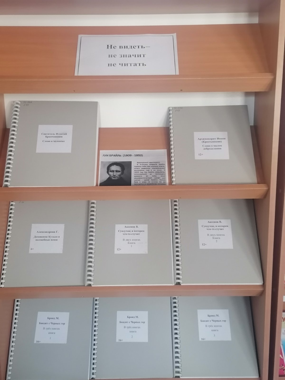 13 ноября - Международный день слепых. Это не праздник это - своеобразный знак беды, напоминающий обществу о существовании рядом людей с ограниченными физическими возможностями, о помощи и о солидарности. В этот день в государственном учреждении "Лельчицкая районная централизованная библиотечная система" прошла интерактивная программа "Они сердцем видят жизнь". Ребята узнали об этом дне, услышали историю "белой трости". Библиограф рассказала о шрифте Брайля, который использовал Валентин Гаюи при обучении, о специальных тетрадях для незрячих, о грифеле и приборе для письма по Брайлю. В ходе мероприятия была просмотрена презентация "Мы сердцем видим жизнь", а также был проведён обзор книг для слепых и слабовидящих людей, которые вызвали большой интерес у присутствующих.