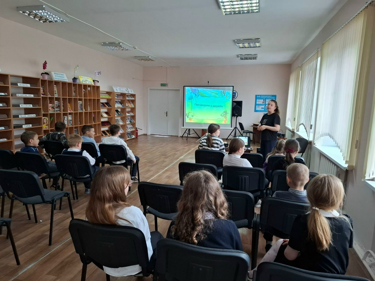 17.04.2026 в Лельчицкой районной централизованной библиотечной системе прошло тематическое мероприятие "Планета дружбы". Ведущая вместе с учащимися 3 кл. ГУО "Лельчицкая средняя школа № 2 им. М.Д. Некрашевича" обсудили, какими качествами должен обладать лучший друг, вспомнили пословицы, поиграли в интеллектуальную игру "Дружбой дорожить умейте", благодаря которой дети поняли, как важно ценить своего друга.